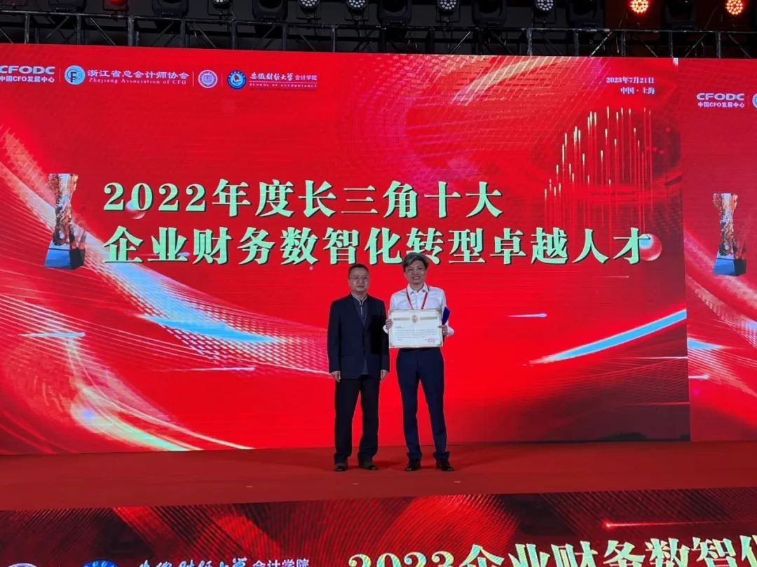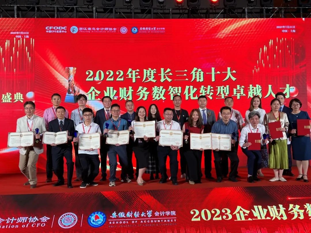 我校陈汉文教授在颁奖阶段作为颁奖嘉宾,向圆通速递高级财务总监文国祥先生、麦克韦尔中国集团副总裁兼财务总监毕永亮先生等颁发了“2022年度长三角十大企业财务数智化转型卓越人才”奖项;向上海振华重工(集团)执行总裁、财务总监朱晓怀先生等颁发了“长三角十大企业财务管理卓越人才”奖项。