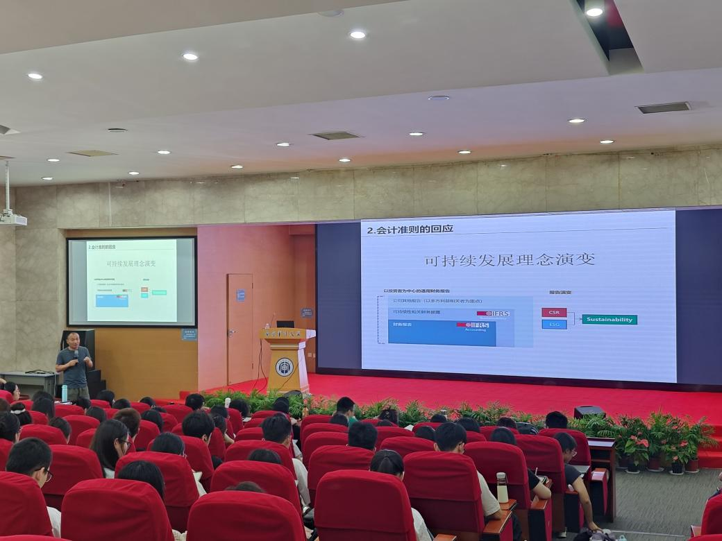 在学术报告环节,方军雄以“企业可持续发展行动及披露的经济效应”为核心切入点,系统剖析了可持续发展理念在资本市场中的实践价值与影响路径。他结合会计准则的演进脉络指出,随着资本市场对多元信息需求的提升,报告体系已从传统的“以投资者为中心的通用财务报告”,逐步拓展至“兼顾多方利益相关者的综合报告”,其中可持续性相关财务披露(IFRS体系涵盖的ESG信息)成为连接企业战略与市场价值的关键纽带,这一演变趋势深刻影响着资本市场的信息传导效率。