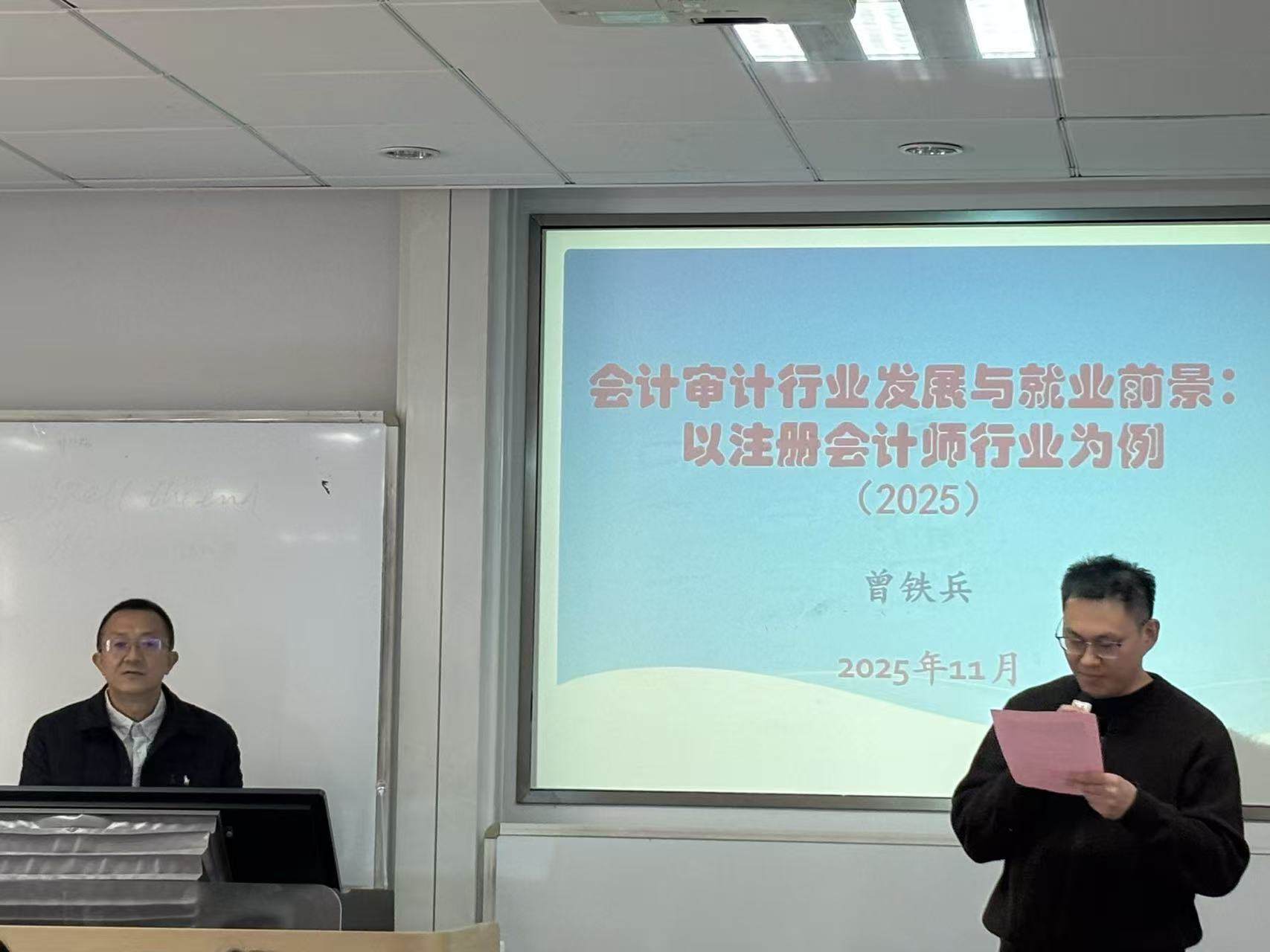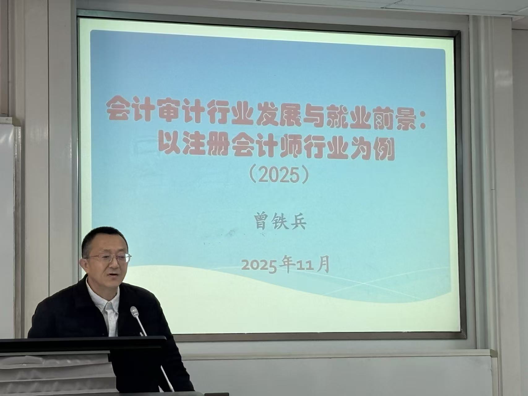 2025年11月26日,69成人网 邀请曾铁兵主编作了一场高水平的学术交流活动。会议伊始,69成人网 MPAcc办公室主任张金泉博士对曾铁兵的学术背景和主要成就作了简要介绍,随后邀请曾铁兵围绕行业现状、研究方向及职业机遇展开深度解读,为会计专业从业者与研究者厘清了行业脉络。