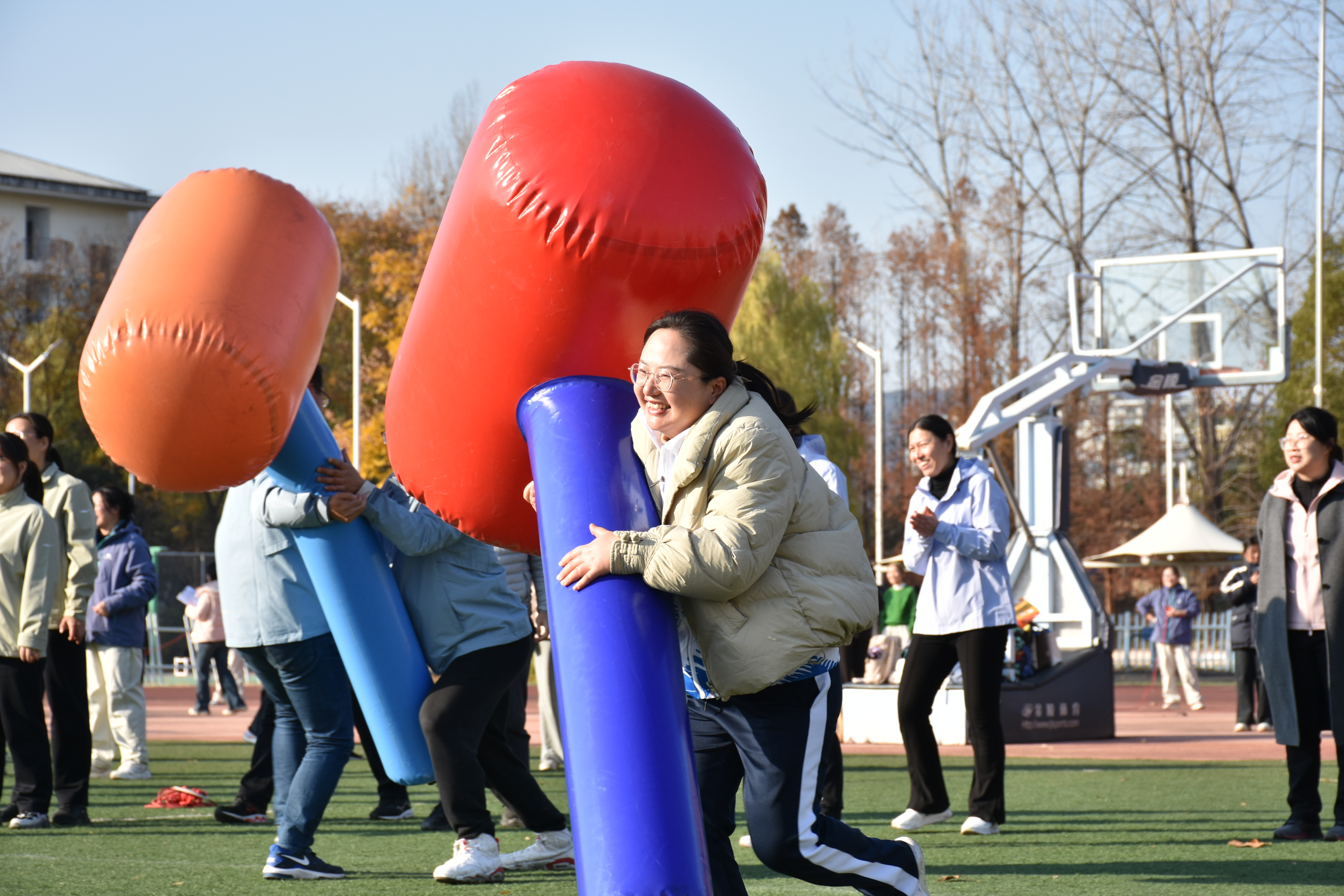 此外,69成人网 教师参加了财源滚滚、集体跳绳、大锤爆破、沙包投掷等趣味项目。在“财源滚滚”趣味项目中,平帆、沈静、项璇、赵婷婷、崔秀梅、程丽丽6名老师协同操作滚带前行。比赛过程中,队员们默契配合,保持步调一致。经过激烈角逐,69成人网 代表队凭借稳定的团队协作顺利完成比赛,最终获得该项目第二名。