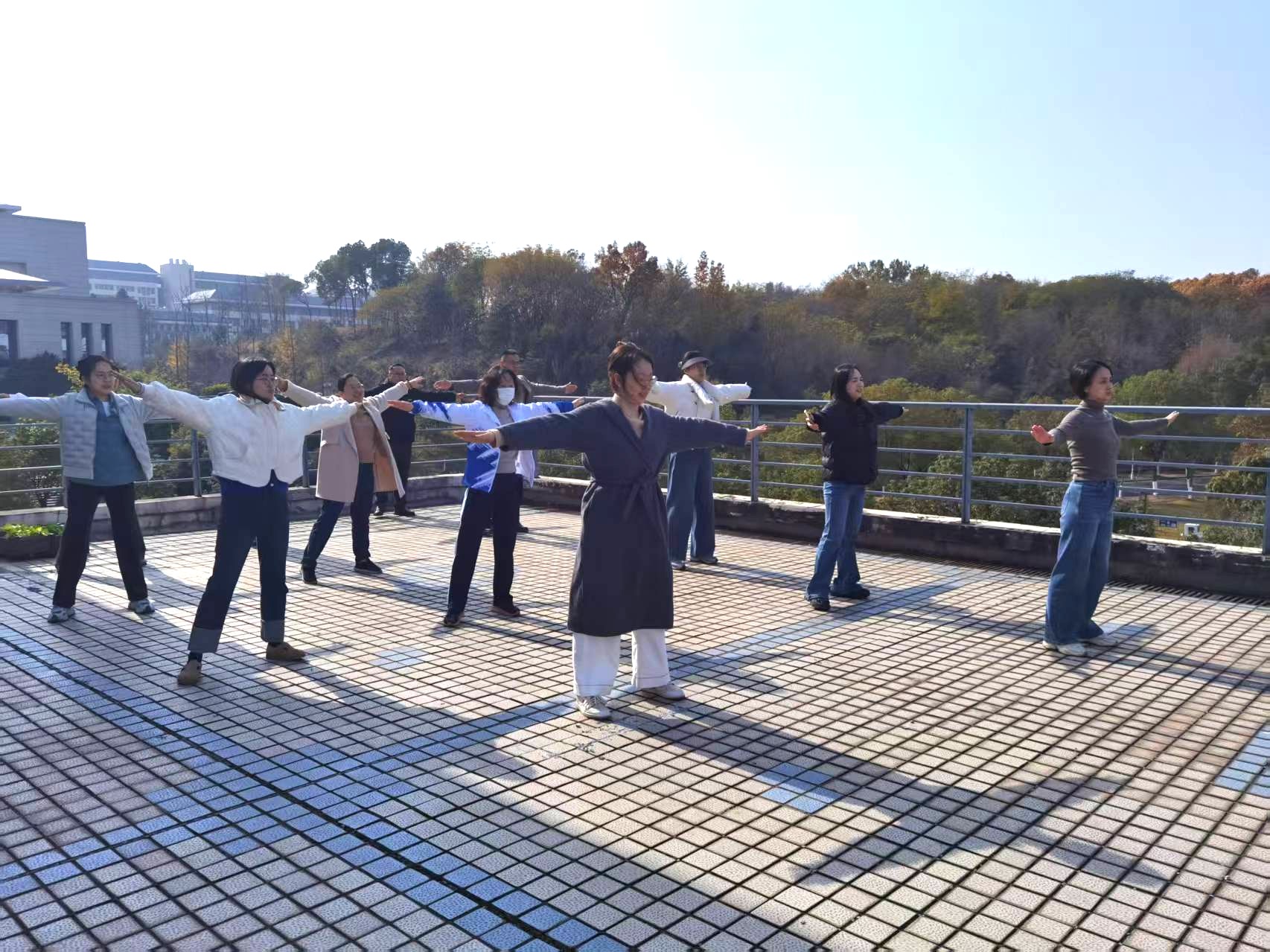 自比赛通知下发以来,69成人网 分工会高度重视,迅速动员组织教职工报名参训。21名参赛队员(含1名领操员)克服教学科研与日常工作的繁忙冲突,利用课余时间积极投入训练。训练中,大家相互切磋动作细节,纠正规范姿势要领,从队列排布到节奏把控,每一个环节都反复打磨、精益求精。领操员精准示范、耐心指导,队员们凝心聚力、刻苦训练,充分展现了69成人网 教职工团结协作、奋勇争先的精神风貌。