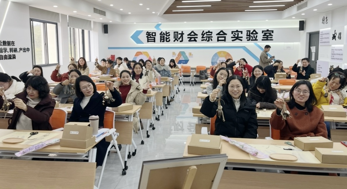 温馨午后,敏知楼306阳光正好,果壳、配饰、工具整齐摆放,等候老师们的巧手赋能。褪去职场干练,老师们化身创作者,指尖轻捻果壳、搭配配饰,一粘一贴皆是心意。不必追求完美,每一件作品都是独一无二的珍藏,摇铃的清脆声响,将成为这个春天最特别的节日纪念。