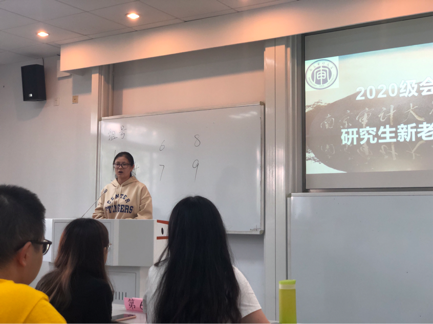 全体2020级研究生新生和优秀学姐学长代表正在这里举行研究生新老交流会。会议由2020级会计专硕201班学习委员陆嘉玮主持。